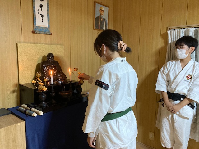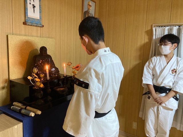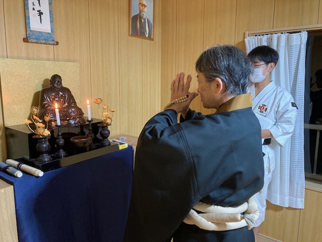 達磨大師の命日とされている10月5日またはその前後に挙行します。祖師達磨大師を礼拝し、その命日にちなんで遺徳を偲ぶとともに、門信徒が一層「拳禅一如」の修行に精進することを達磨大師の前で誓う儀式です。(儀式要領参照)