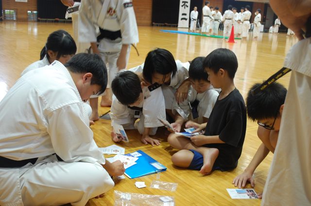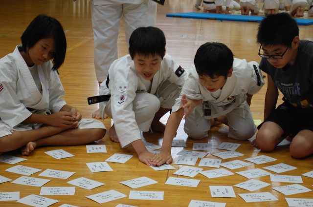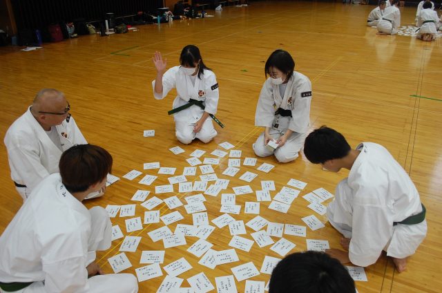 かるた修練の様子。少林寺拳法に関係した内容のかるたを参加者全員で楽しみました。