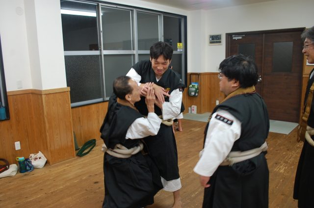 女性三人の三人掛け演武です。難しい三人掛けにチャレンジしました。一人を固めながらも、もう一人に意識を向けます。