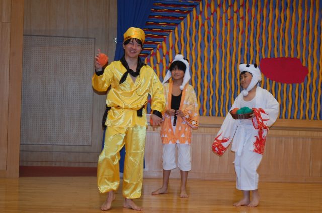 加藤拳士が主座を務めました。いい姿勢です。巻物の紐の結び方も、一生懸命練習していました。