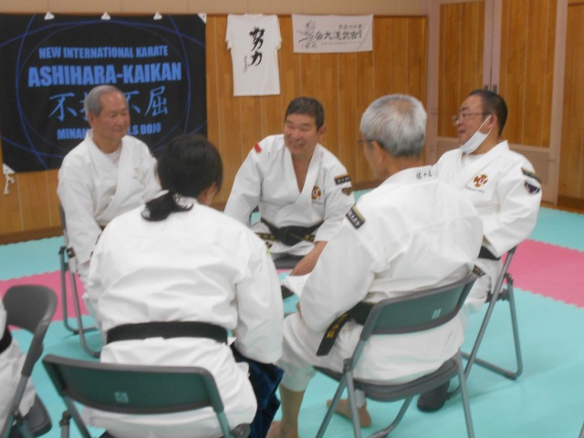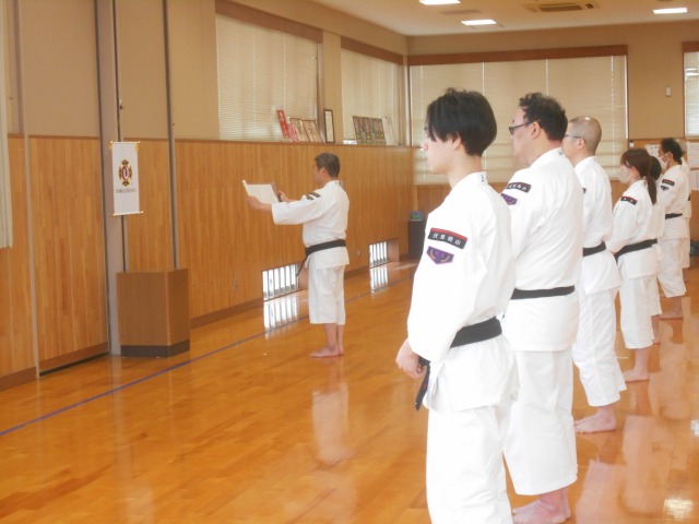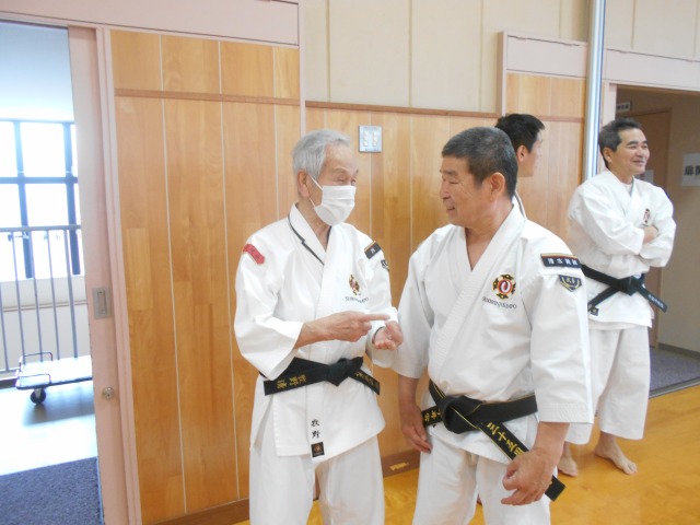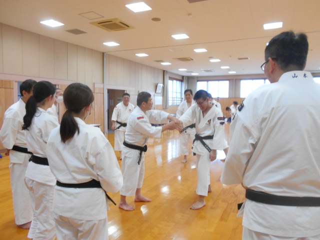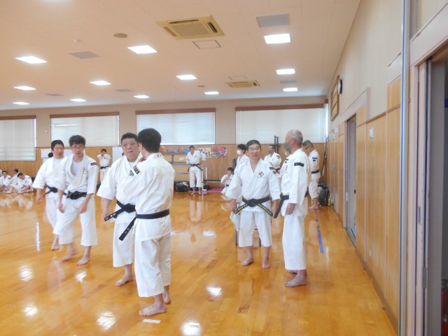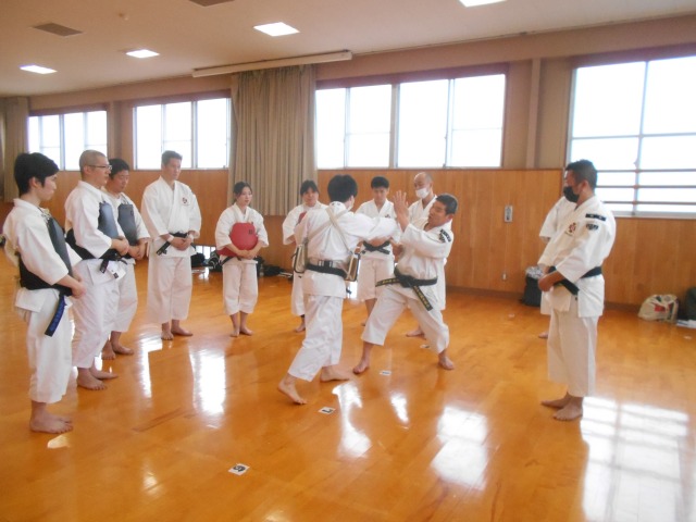基本実技では、天地拳第1系~4系の注意点の確認、直突・上鈎突・横鈎突・振突の連続攻撃に対する捌きと受けの相対修練、小手抜からの虚実を実践する相対演練を行いました。
