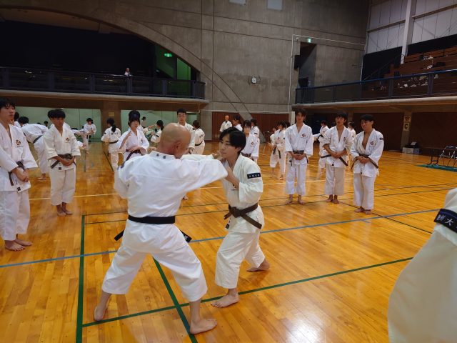 表彰の賞状が出来上がるまで静岡県少林寺拳法連盟 齋藤副理事長、長野県少林寺拳法連盟 鷹野理事長、山梨県、山梨峡東道院、矢ケ崎道院長の技術講習会が行われ皆、楽しそうに受講をしていました。