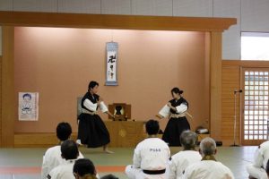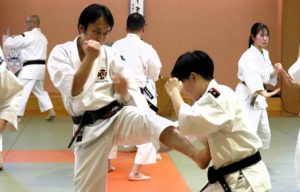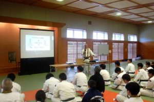 五段以上のグループは濱崎本山教師が担当しました。忖度なしで相手が思いっきり掴んだり攻撃しても自分が不利な体勢でも,守法や技ができるか修練にて確認しました。濱崎本山教師が行うと簡単にできるように見えますが,難しいです・・。